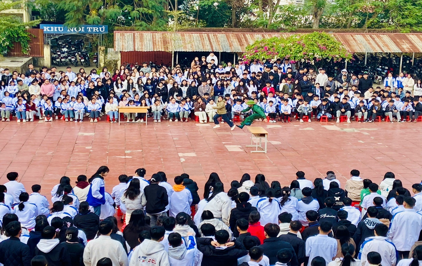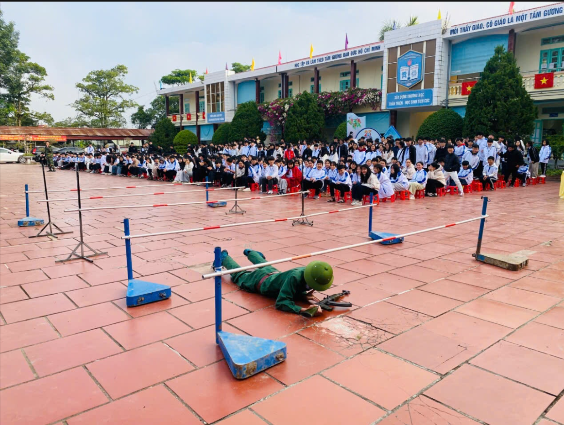 Bên cạnh phần thi kiến thức, học sinh còn hào hứng tham gia nội dung vận động trên thao trường, tái hiện tinh thần rèn luyện bền bỉ, ý chí kiên cường của người lính. Hoạt động đã tạo nên không khí thi đua sôi nổi, đoàn kết, lan tỏa tinh thần trách nhiệm và khát vọng cống hiến trong học sinh.