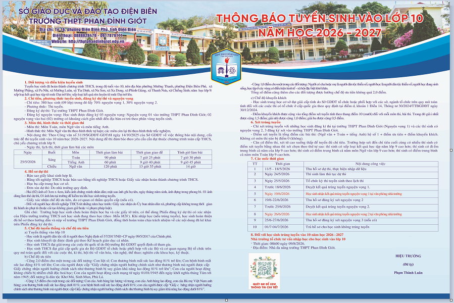 THÔNG BÁO LỊCH THI TUYỂN SINH VÀO 10 - TRƯỜNG THPT PHAN ĐÌNH GIÓT
